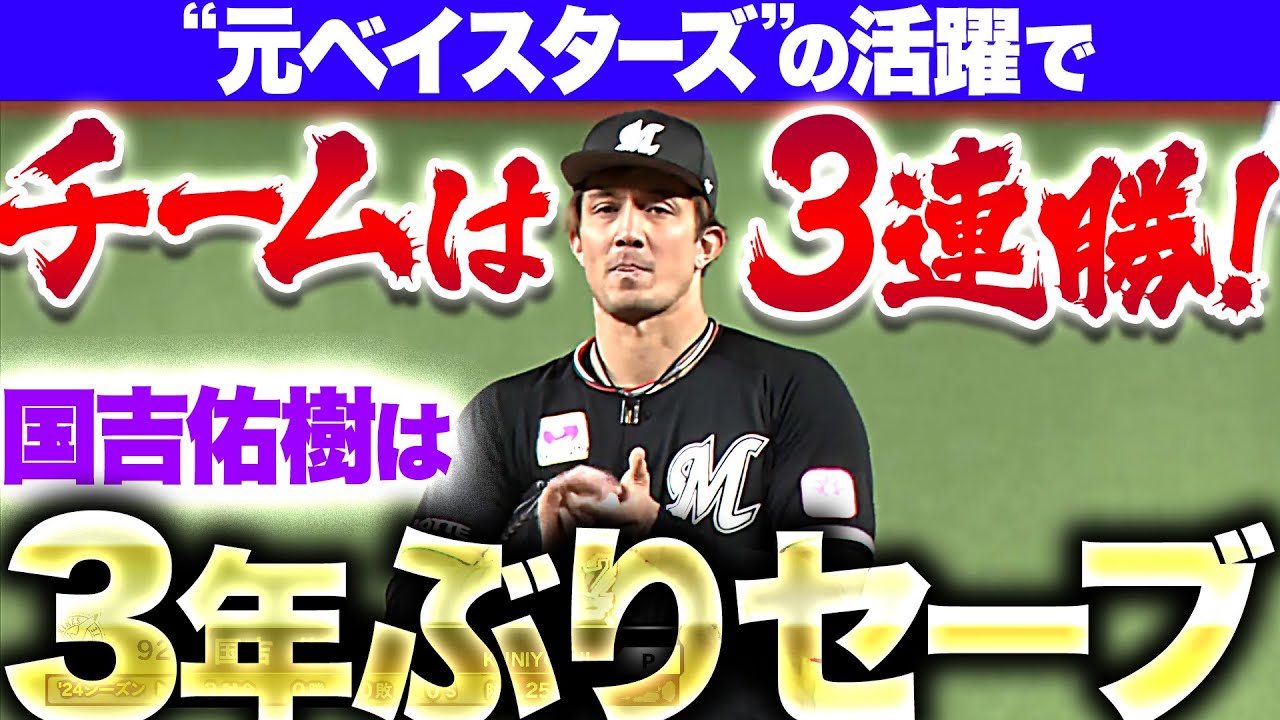 ソトの一打で勝ち越した直後、千葉ロッテ・国吉佑樹が10回裏のマウンドへ。先頭を中飛に打ち取り、走者を出すもサードライナーで2死に。最後は一ゴロに仕留めて1点のリードを死守。自身3年ぶりのセーブを挙げ、元ベイスターズコンビの活躍でチームは3連勝!!
