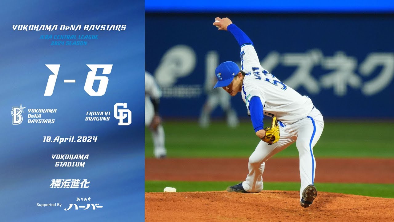 2024.4.10ハイライト【DeNA vs 中日】プロ初登板初先発の小園選手は先頭からプロ初奪三振を記録するも、得点を許す展開に。3番手中川颯選手も5回1失点と粘投するが、連敗ストップならず… ■提供:ありあけハーバー https://harbour-world.jp/ ありあけハーバーは、港町横浜の船をイメージし、伝統熟成製法で焼き上げた贅沢なマロンケーキ。 横濱ハーバーは今年で70周年を迎えます。 2024シーズン 公式戦 #中川颯 #ベイスターズ #横浜進化 #プロ野球baystarsCENTRAL LEAGUEDeNAOfficial ChannelOfficial VideoYOKOHAMA DeNA BAYSTARSYOKOHAMA DeNA BAYSTARS Official ChannelYOKOHAMA DeNA BAYSTARS Official Videoベイスターズ横浜横浜DeNAベイスターズ横浜スタジアム NPBHUB.COM | The Fanbase of Nippon Baseball & Nippon Professional Baseball