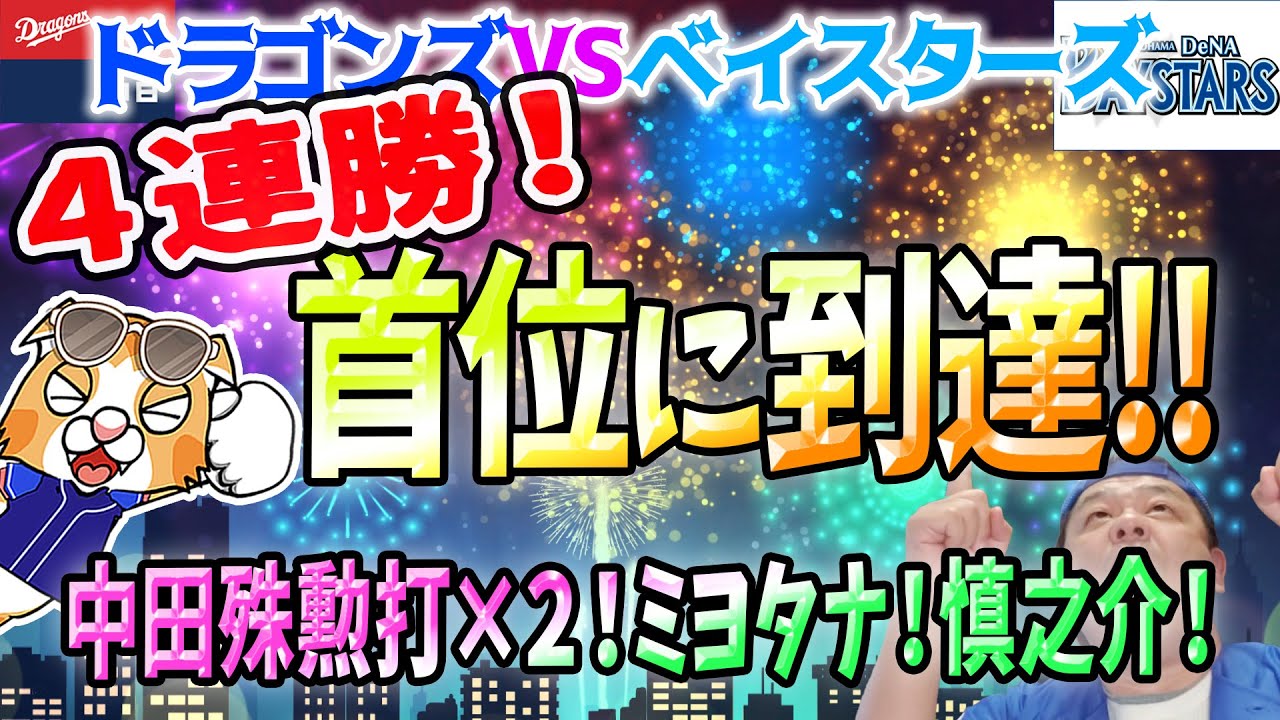 【中日ドラゴンズ】4連勝でいよいよ首位!小笠原好投!中田リラックス打点3!三好田中の1・2番はアライバを超えるかそろそろ考える時期か【祝勝会ライブ】