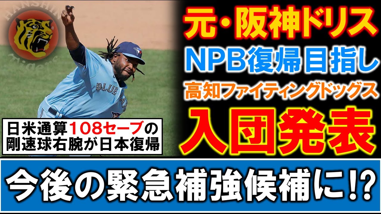 【格安で獲得も!?】元阪神『ラファエル・ドリス』が四国IL高知ファイティングドックスへ入団発表!日米通算108セーブの実績を持つ右腕がNPB復帰を目指す中で、今後新外国人の緊急補強候補として大注目!?