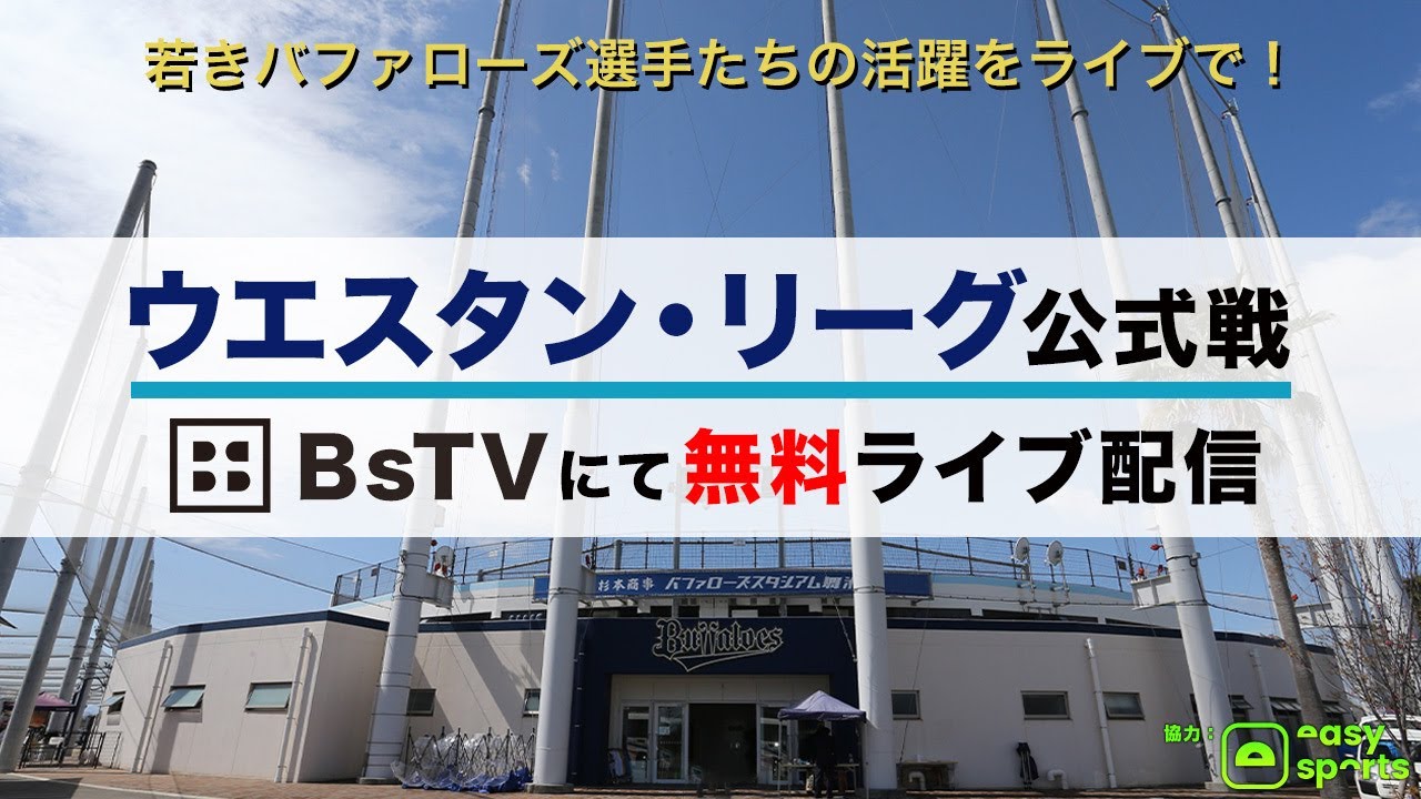 杉本商事バファローズスタジアム舞洲・大阪シティ信用金庫スタジアムで行われるウエスタン・リーグ公式戦を、今シーズンもイージースポーツ協力のもと、球団公式YouTubeチャンネル「BsTV」にてライブ配信いたします!この試合は試合終了まで配信いたします。