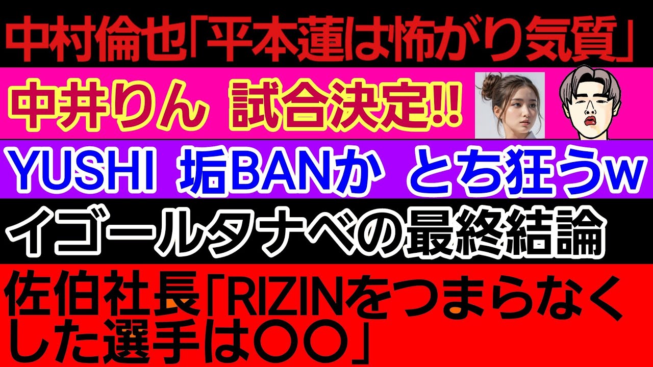 〇中村倫也「平本蓮は怖がり」「朝倉未来 応援」〇井上直樹 意外な選手のセコンドへ〇中井りん 試合決定〇YUSHI 誕生日に覚醒w〇イゴールの最終結論。階級 戦いたい相手〇RIZINをつまらなくした選手