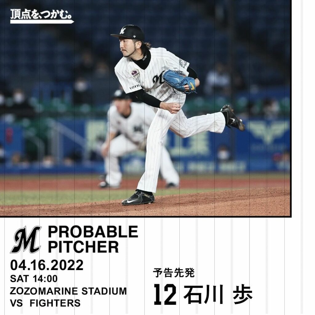 Chiba-Lotte-Marines: 04.16.2022 予告先発:#石川歩 投手 #chibalotte #CLM30th…