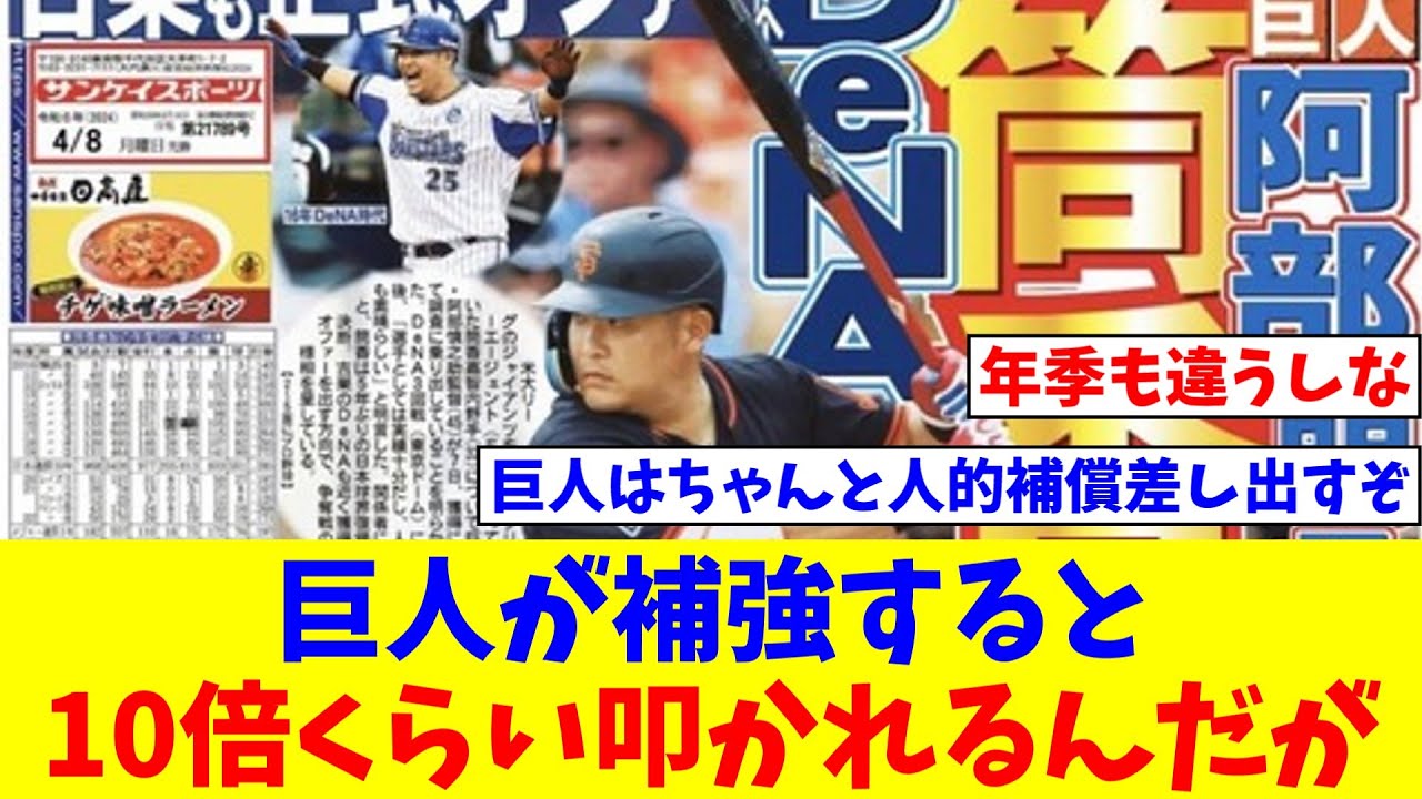 巨人が補強するとソフトバンクの時と比べて10倍くらい叩かれるんだが【なんJ反応】【プロ野球反応集】【2chスレ】【5chスレ】