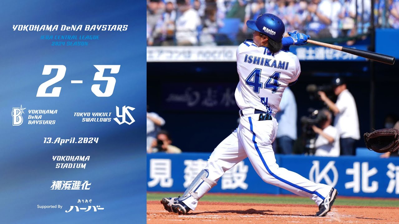 2024.4.13ハイライト【DeNA vs ヤクルト】石上選手のタイムリーで先制すると、4回には桑原選手の犠飛でリードを広げる。しかし6回に4点を奪われ終盤の反撃を封じられてしまい、連勝ならず…