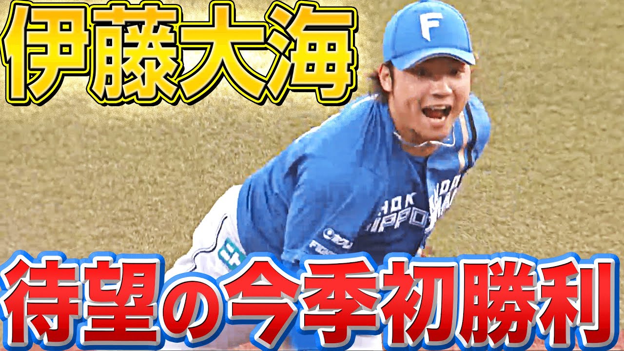 今日先発登板した北海道日本ハム・伊藤大海が5回3失点と粘りの投球。味方の援護にも恵まれ、待望の今季初勝利をあげた。