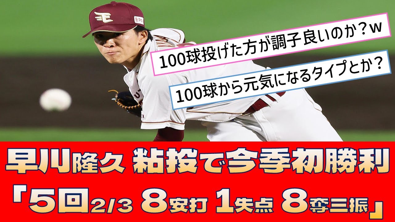 【楽天 早川隆久】粘りの投球で今季初勝利「5回2/3 8安打 1失点 8奪三振」【プロ野球 2ch 5ch なんJ】