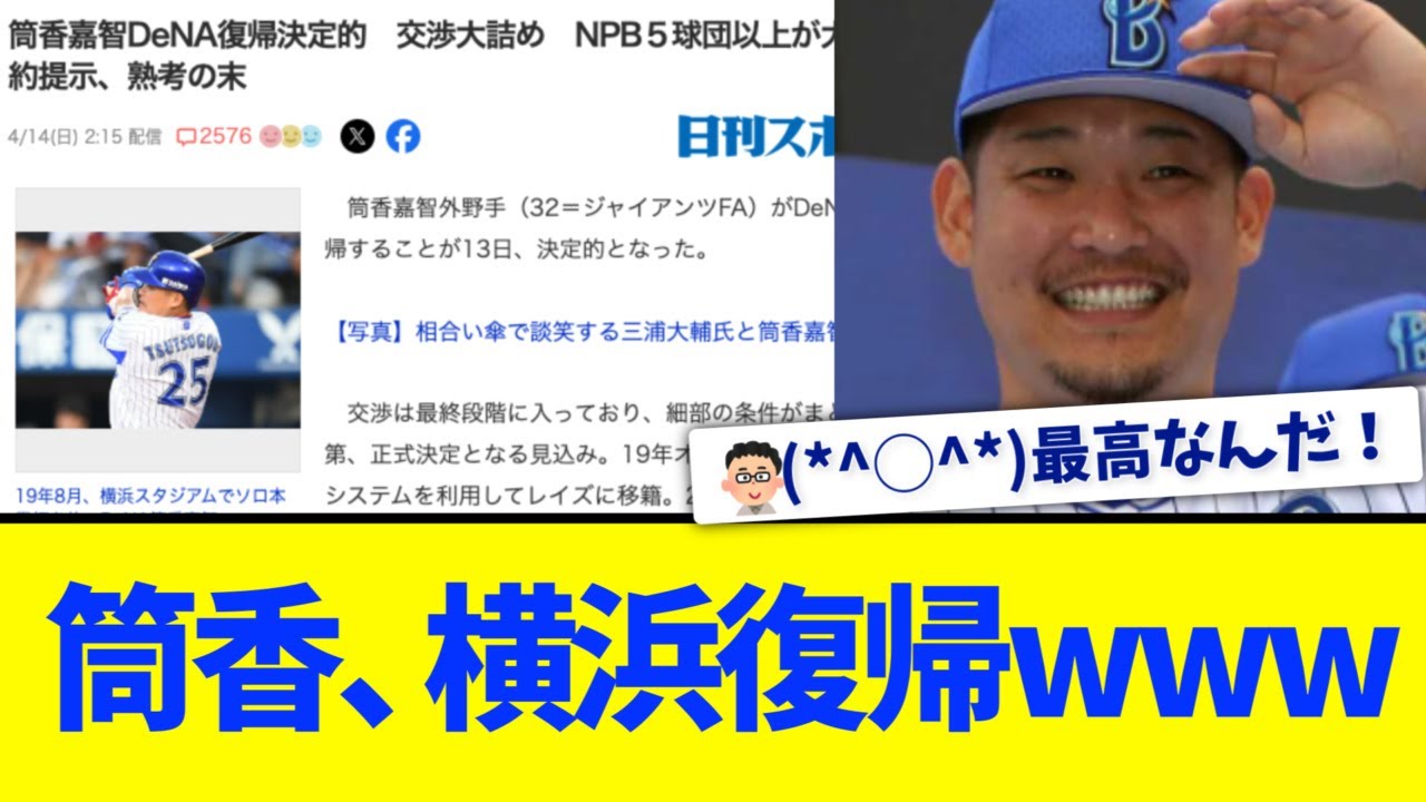 【(*^○^*)】横浜DeNA、筒香復帰決定的!