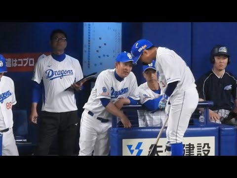 【立浪マジック】打席前にアドバイス送った高橋周平・村松が直後にヒットを放ちベンチで大喜びの立浪監督 2024.4.12