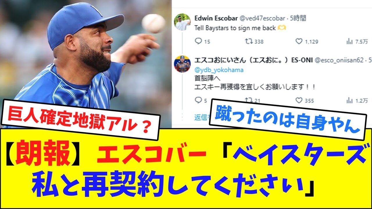 【朗報】エスコバー「ベイスターズ私と再契約してください」【ネット反応集】