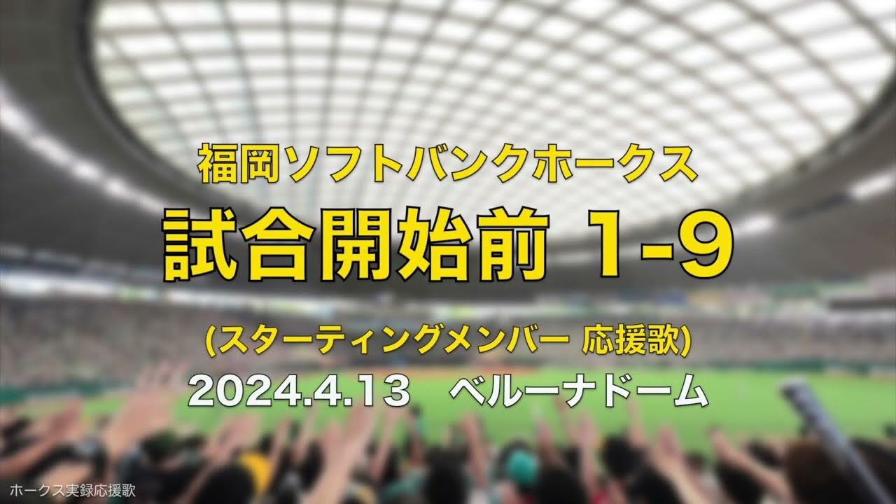 【高音質】福岡ソフトバンクホークス 1-9 スタメン応援歌メドレー 2024.4.13 (再掲)