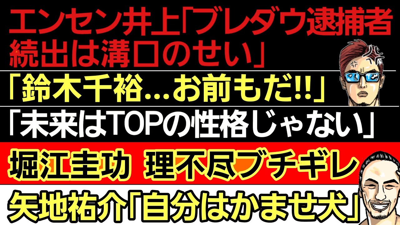 〇エンセン井上 ヤ⚫ザをジムに受け入れてる理由&「ブレイキングダウン逮捕者続出は溝口勇児のせい」「朝倉未来はトップの性格じゃない」〇堀江圭功 運転手に理不尽ブチ切れ〇矢地祐介「自分はかませ犬」