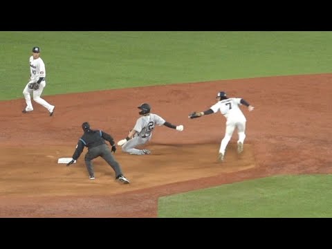長岡のタッチがお見事!盗塁阻止!中村悠平のバズーカで萩尾を刺す!2024/04/11 東京ヤクルトスワローズ Tokyo Yakult Swallows東京ヤクルトスワローズ長岡秀樹 NPBHUB.COM | The Fanbase of Nippon Baseball & Nippon Professional Baseball