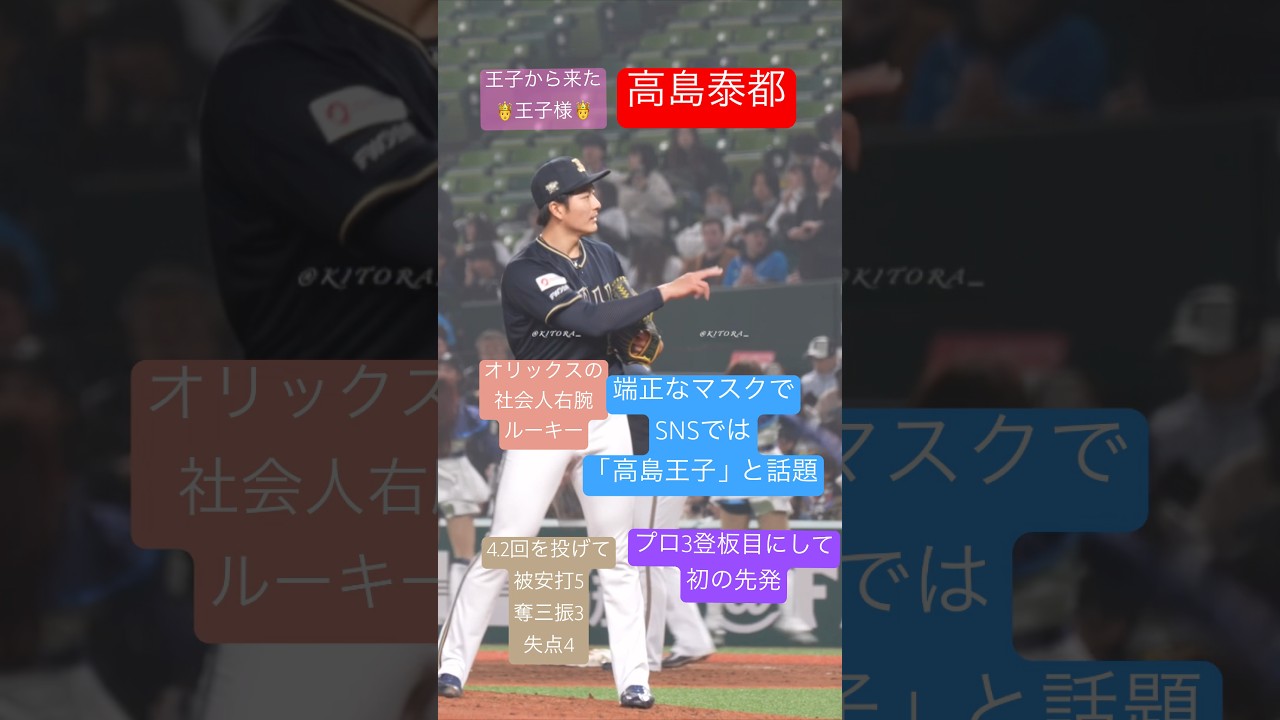 「王子からきた高島王子」オリックスの新イケメン投手・高島泰都