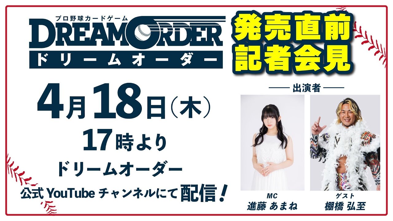 4/20(土)に発売が迫った、『プロ野球カードゲーム ドリームオーダー』に関する記者会見の同時配信になります。