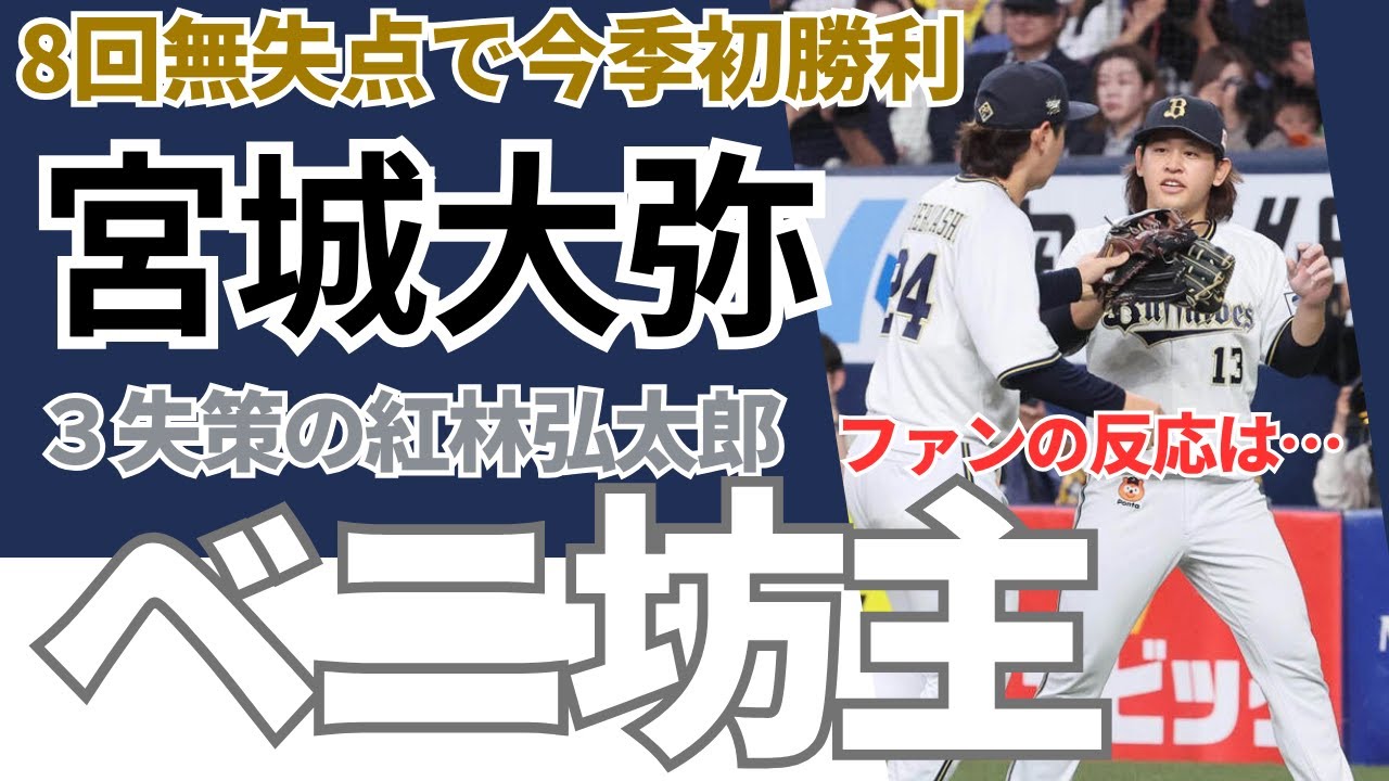 【8回無失点で今季初勝利!】オリックス宮城大弥!3失策の紅林が坊主に!?《ファンのコメント》 オリックスの宮城大弥投手(22)が13日、日本ハム戦(京セラD)に今季3度目の先発登板。 8回105球を投げ6安打7奪三振無失点の快投で今季初勝利を挙げた! みなさんのコメントお待ちしております!! Hiroshima Toyo CarpWBCオリオリックスジャイアン侍ジャパン坊主宮城宮城大弥山本山本由伸広島広島東洋カープ栗林良吏紅林紅林弘太郎野球 NPBHUB.COM | The Fanbase of Nippon Baseball & Nippon Professional Baseball