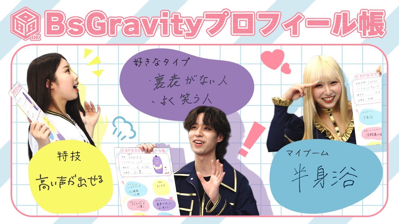 BsGravityに懐かしのプロフィール帳を作成してもらいました!特技や性格などをアピールした結果、個性溢れるプロフィール帳となりました。ぜひご覧ください!全編はBPB DXで!!
