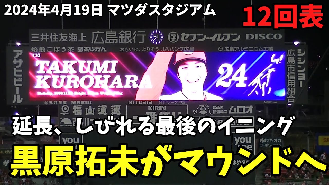 【現地撮影映像】延長12回表。しびれる展開、しびれる場面でマウンドを託されたのは黒原拓未。ランナーを出すも、見事に抑えきる! 2024年4月19日 vs 巨人