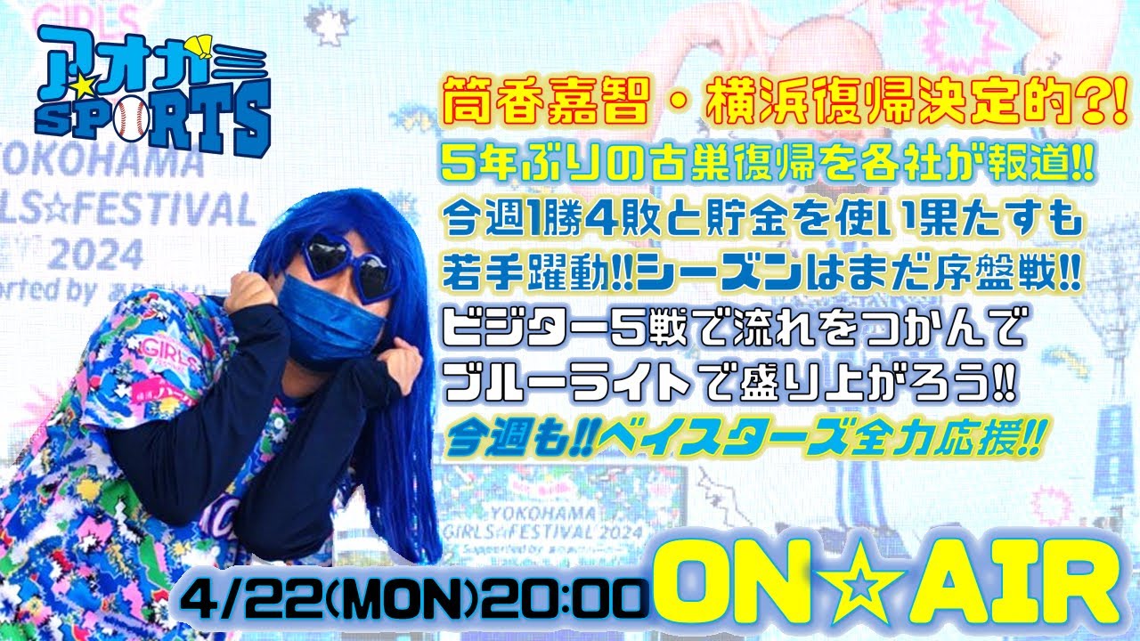 筒香復帰決定か?!報道各社が報道!!貯金を使い果たすもシーズンは始まったばかり!!【4/15】アオガミ☆SPORTS~ベイスターズ応援番組!!~