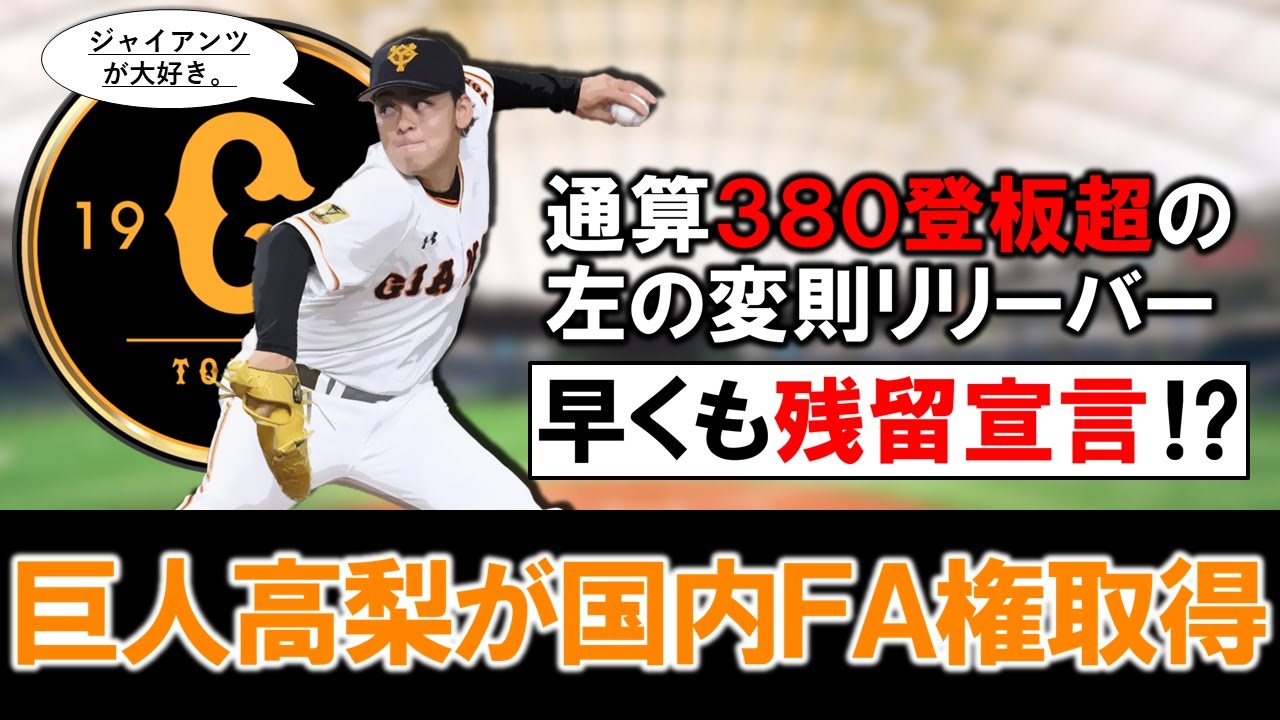 【早くも残留宣言も!?】巨人『高梨雄平』が国内FA権取得を取得!楽天からトレードで巨人に移籍し活躍を続ける変則派左腕は今オフの市場でも注目!?
