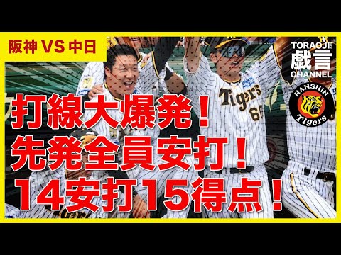 『阪神 VS 中日』打線大爆発!先発全員安打!14安打15得点!