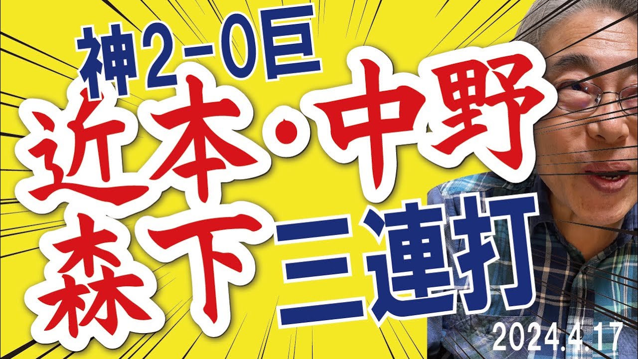 2024.4.17 神2-0巨 T先発伊藤・リベンジ粘投7回無失点、森下2点決勝打、T無失点リレー伊藤・桐敷・岩崎・ゲラ