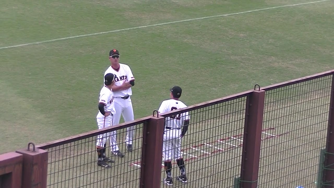 試合前の秋広優人や増田陸 中田歩夢(2024年4月18日 読売ジャイアンツ対 日本ハムファイターズ 2軍)