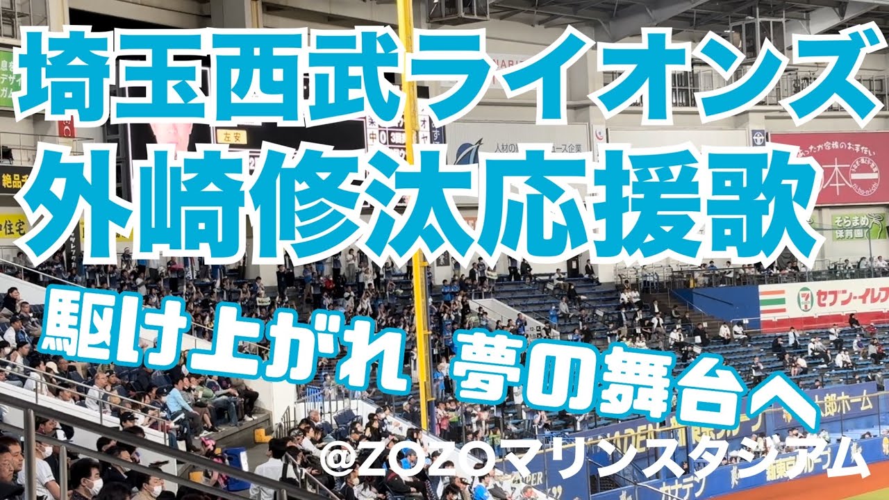埼玉西武ライオンズ 外崎修汰応援歌 2024.04.17撮影 @ZOZOマリンスタジアム 埼玉西武ライオンズ 外崎修汰応援歌 ◾️歌詞 駆け上がれ 夢の舞台へ 無我夢中に 走れ早く みてみたいな 夢中になれる君 いくぞ前進 その先へと Saitama Seibu Lions埼玉西武ライオンズ外崎修汰 NPBHUB.COM | The Fanbase of Nippon Baseball & Nippon Professional Baseball