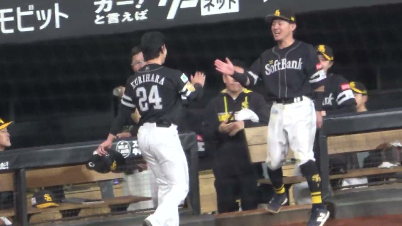 2024 笑顔がいい ソフトバンクの栗原陵矢の激走で1点をもぎ取った時のベンチ 現地映像