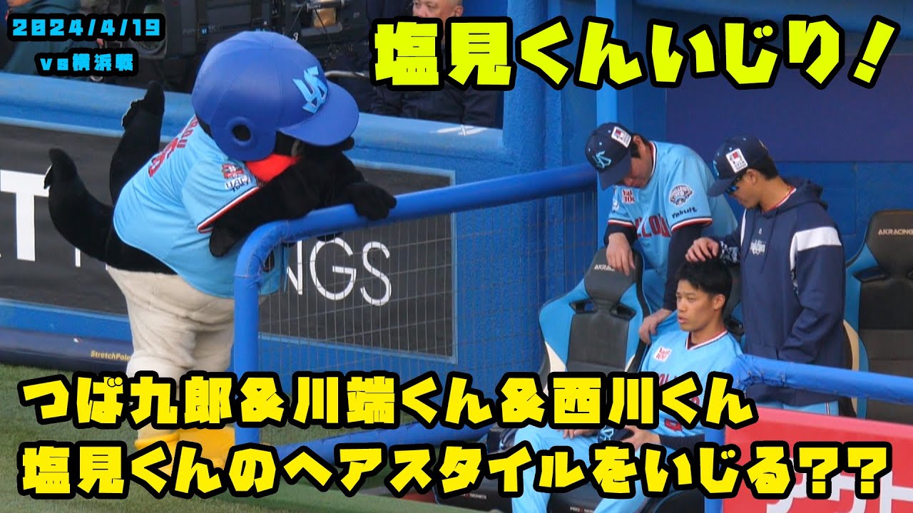 つば九郎&西川くん 塩見くんのヘアスタイルが気になる? 2024/4/19 vs横浜