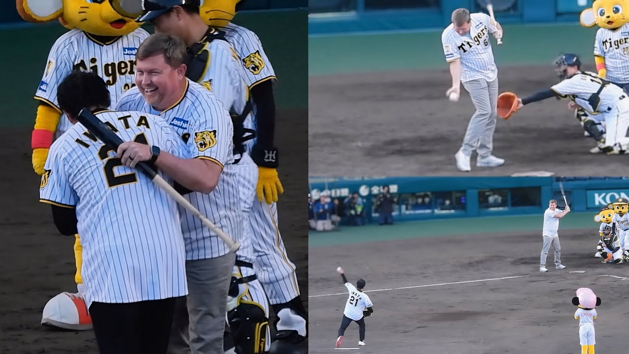 【仰天の始球式】岩田の大暴投をまさかの素手でキャッチしたブラゼル。懐かしの応援歌も流れる【ファーストピッチセレモニー】2024.4.19