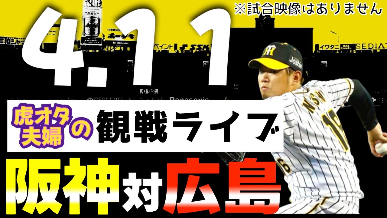 【阪神:観戦ライブ】4/11阪神タイガース対広島東洋カープの公式戦を皆さんと一緒に観戦・応援するLIVE配信です。予告先発投手:阪神西勇輝、広島大瀬良