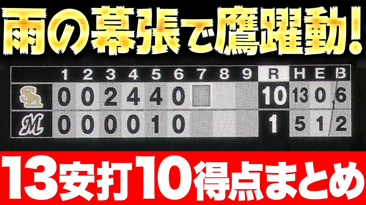 【雨の幕張】鷹打線が躍動『6回までに13安打10得点…雨天コールドで2連勝!』