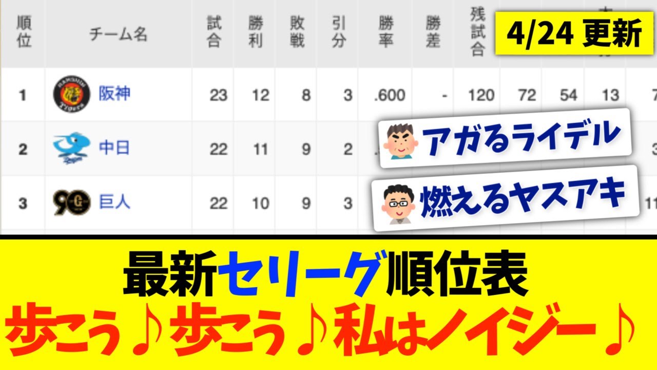 【4月24日】最新セリーグ順位表 〜歩こう♪歩こう♪私はノイジー♪〜