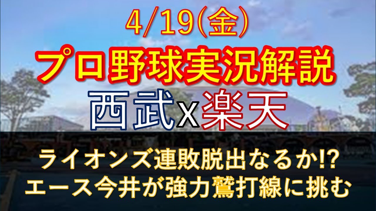 【今井達也】西武対楽天 4/19 エース今井で連敗脱出なるか【野球実況・解説】