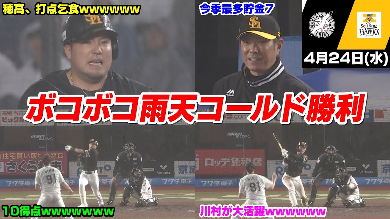 今日の穂高、最強ホークス打線爆発で13安打10得点取って雨天コールド勝利WWWWWWWW【2024/4/24】