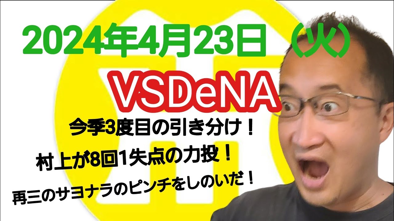 【阪神タイガースについて語る動画】2024年4月23日(火) △ DeNA 1 × 1 阪神 △ 今季3度目の引き分けに! 村上が8回1失点の力投! リリーフ陣が再三のサヨナラのピンチをしのいだ!