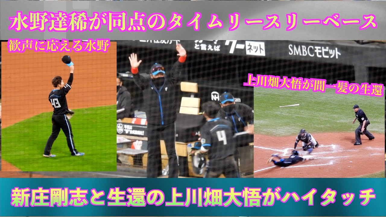 【20240419】水野達稀の同点のタイムリースリーベースで球場が盛り上がる。