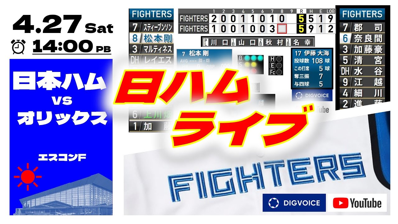 【日ハムライブ】2024年4月27日 北海道日本ハムファイターズ vs オリックスバファローズ @エスコンフィールドHOKKAIDO  データ解説実況ライブ