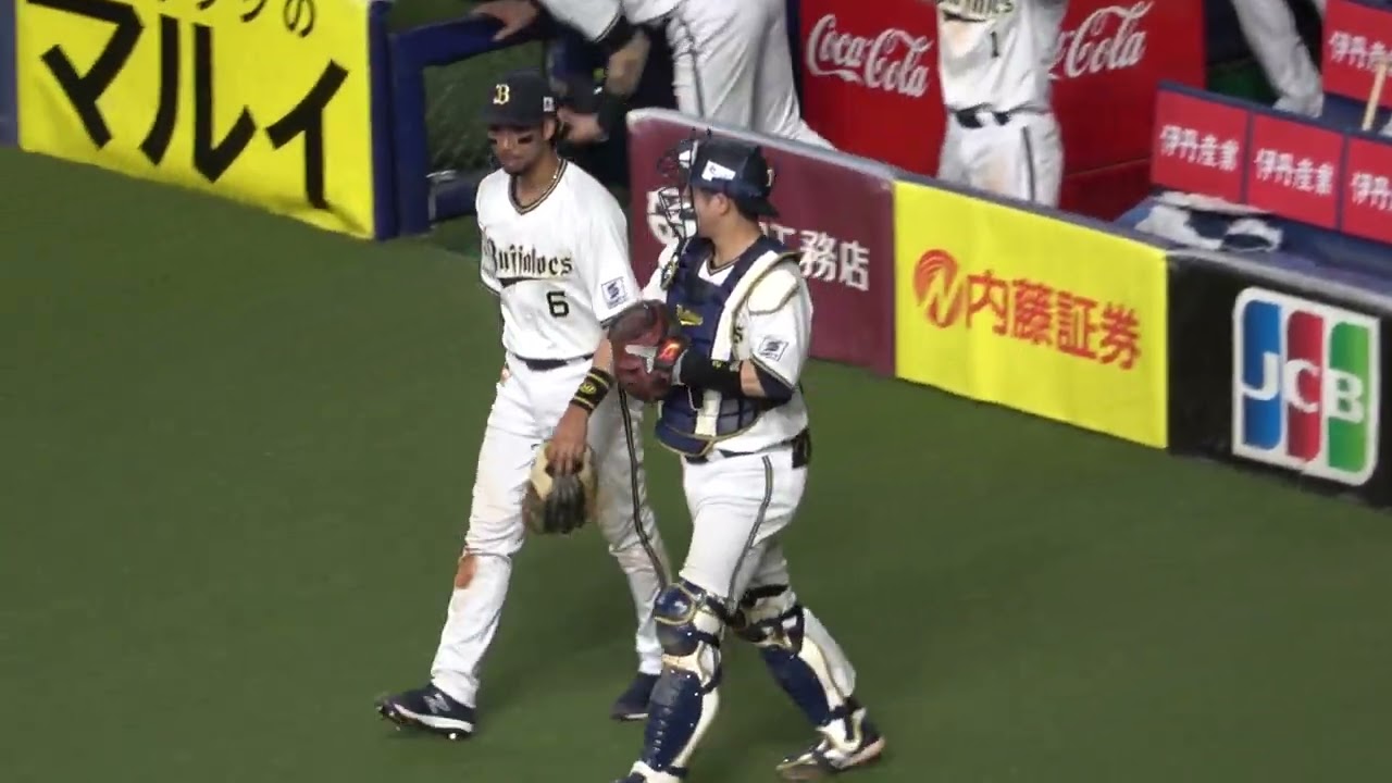 この日、ダメなプレーも良いプレーもあった宗に声をかけて軽く談笑する若月健矢 2024年4月24日 オリックスvsライオンズ 京セラ #宗佑磨 #若月健矢 #森友哉 #太田椋 #石川亮 #西川龍馬 #渡部遼人 #福田周平 #安達了一 #オリックスバファローズ ORIX Buffaloesオリックス・バファローズ若月健矢 NPBHUB.COM | The Fanbase of Nippon Baseball & Nippon Professional Baseball