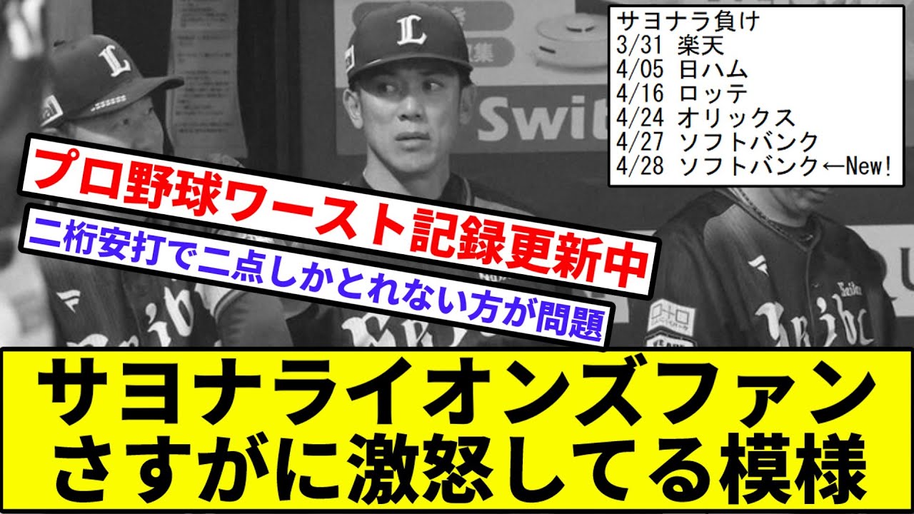 【延長戦入ったら負ける病】サヨナライオンズファン、さすがに激怒してる模様【なんJ反応】【プロ野球反応集】【2chスレ】【1分動画】【5chスレ】【延長戦15連敗】【ソフトバンク】【松井稼頭央】