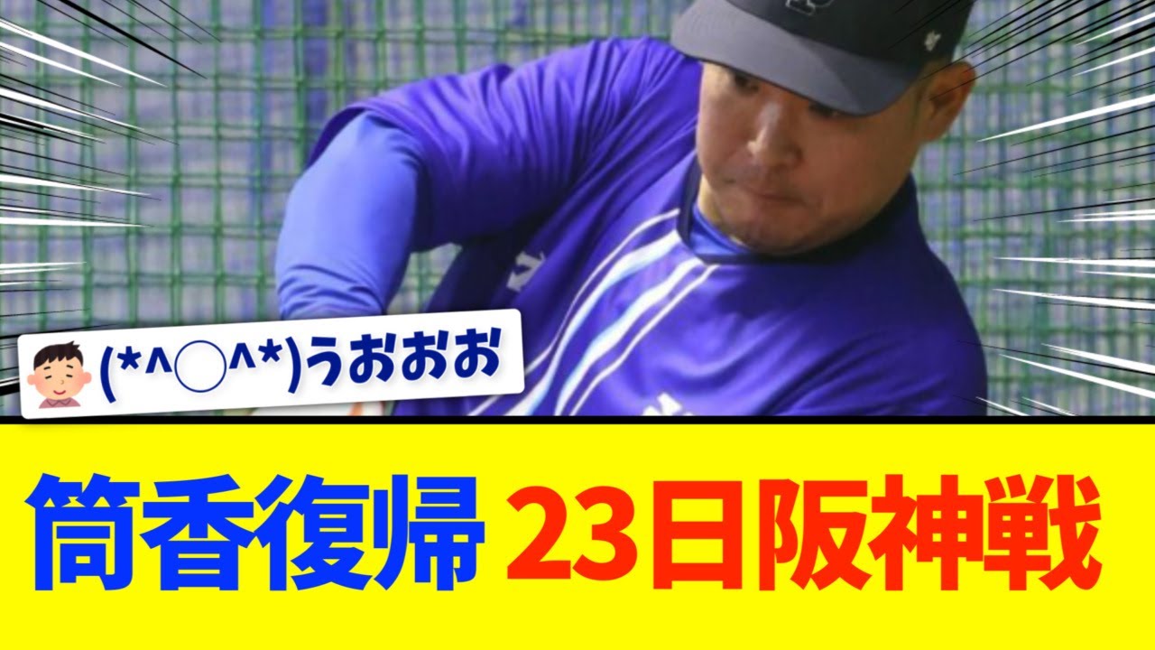 【横浜DeNA】筒香、23日阪神戦で1軍昇格へ