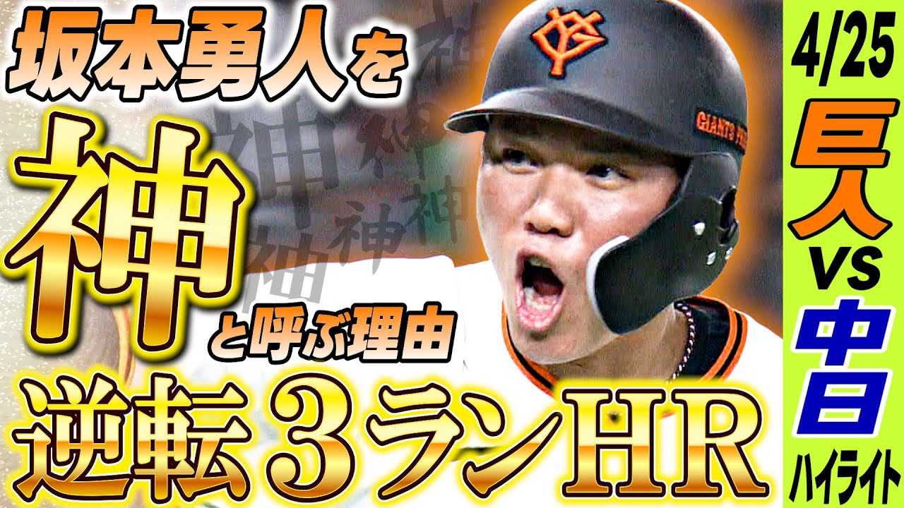 巨人・坂本勇人選手が逆転3ラン、ドラフト1位の西舘勇陽投手は開幕から10試合連続無失点の投球で勝利。4月25日 巨人vs中日のハイライトです。