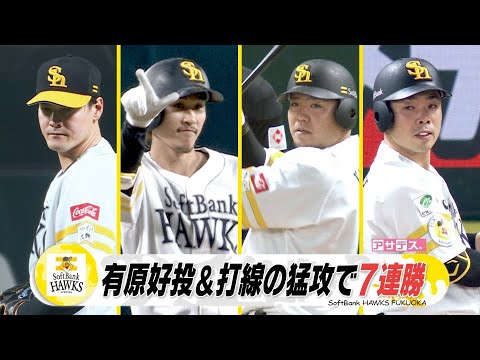 有原8回無失点&三森3安打 投打かみ合い ホークス2年ぶり7連勝【スポーツキラリ★】 6連勝中のホークス、4月30日は楽天と対戦。 先発有原投手の好投!打線も猛打賞が3人も! ホークス連勝を「7」へ伸ばしました! (2024/05/01) #プロ野球Fukuoka SoftBank HawksKBCアサデスアスリートシリタカスポーツセ・リーグパ・リーグホークスももスポ九州朝日放送福岡福岡ソフトバンクホークス野球 NPBHUB.COM | The Fanbase of Nippon Baseball & Nippon Professional Baseball