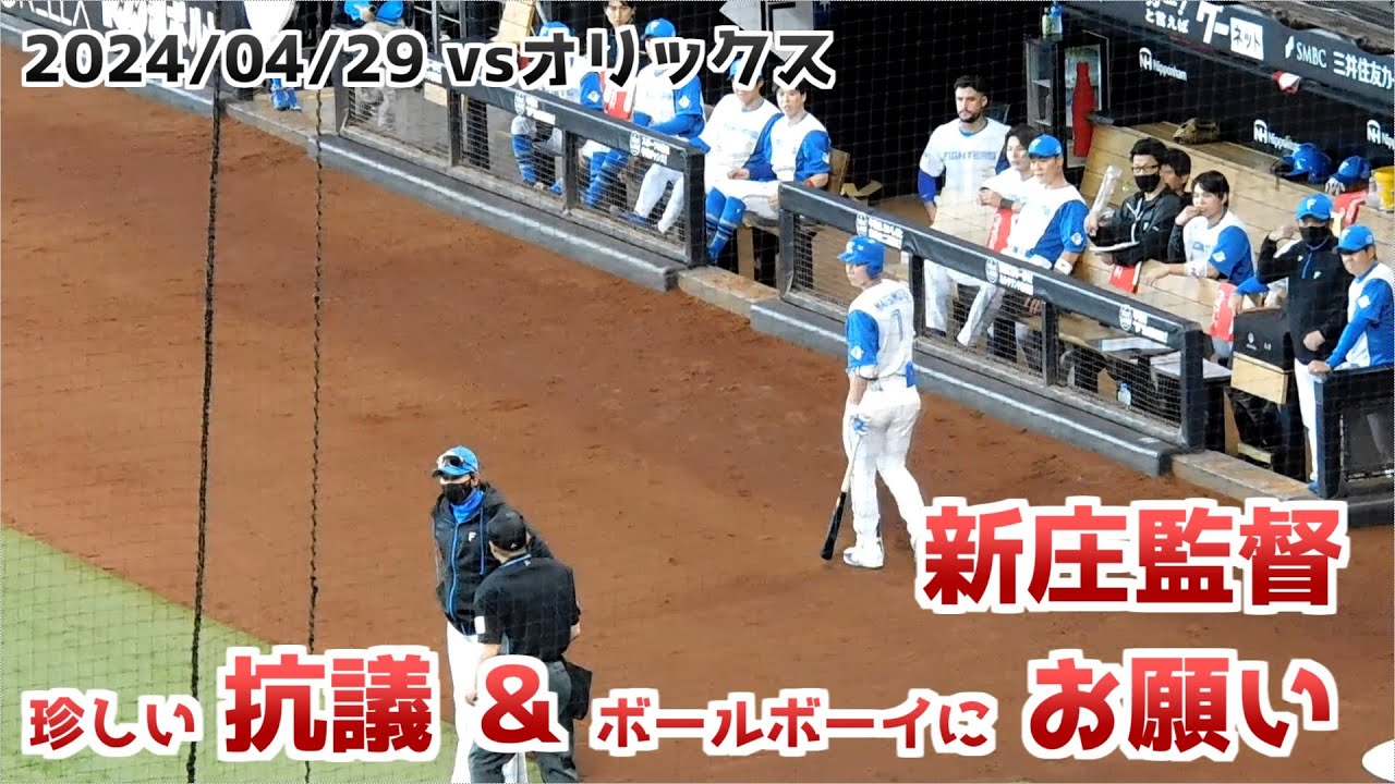 【日本ハム】新庄監督 球審に抗議する&ボールボーイにお願い【2024年4月29日】
