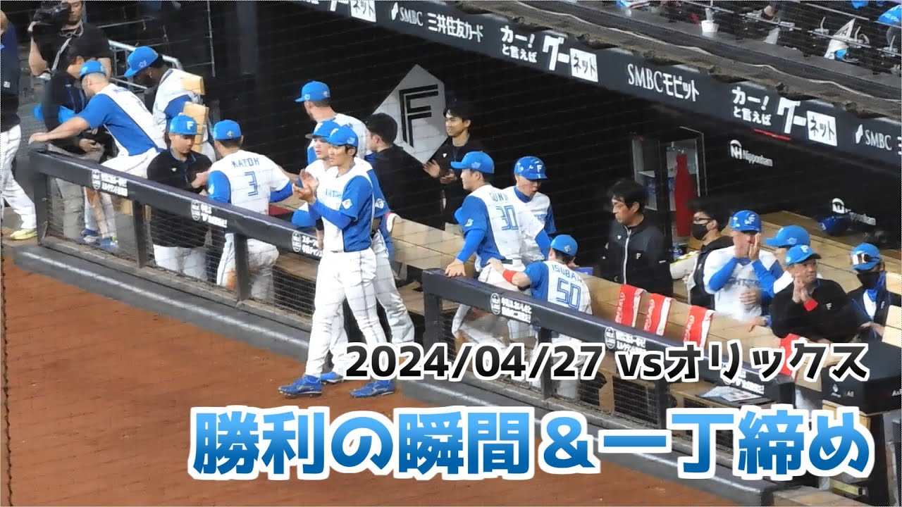 【日本ハム】伊藤大海選手3勝目 勝利の瞬間&一丁締め ベンチの様子【2024年4月27日】