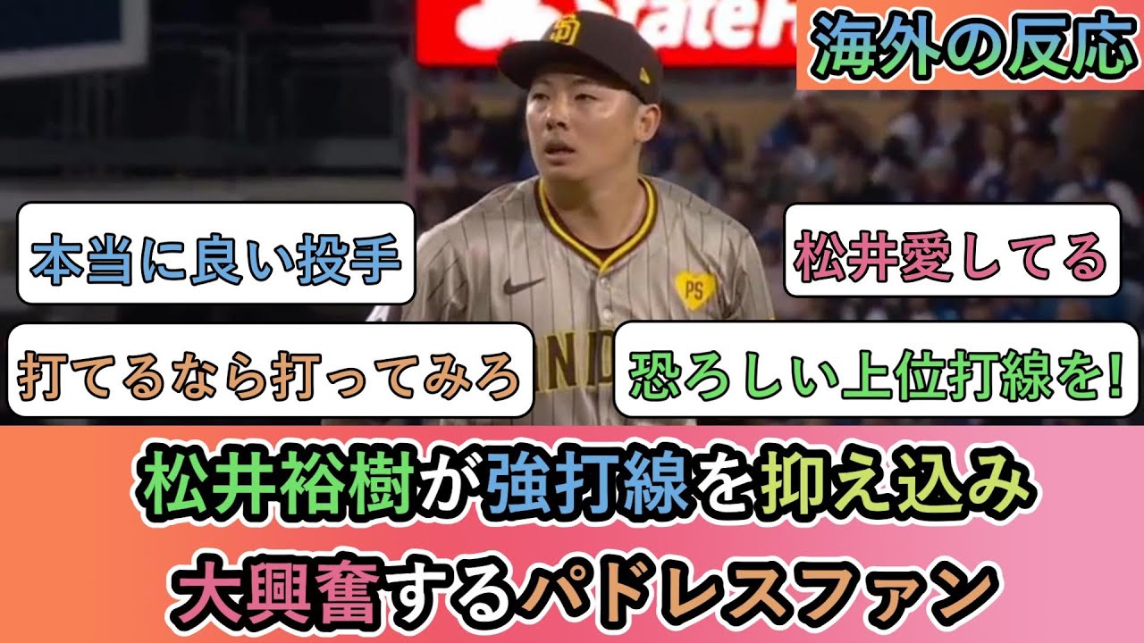 【海外の反応】 松井裕樹がドジャースの強打線を抑え込み、大興奮するパドレスファン