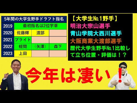 大学生№1野手明治大宗山塁選手・青山学院大西川史礁選手・大阪商業大渡部聖弥選手歴代大学生野手比較して立ち位置・評価は!?【西尾典文さん】