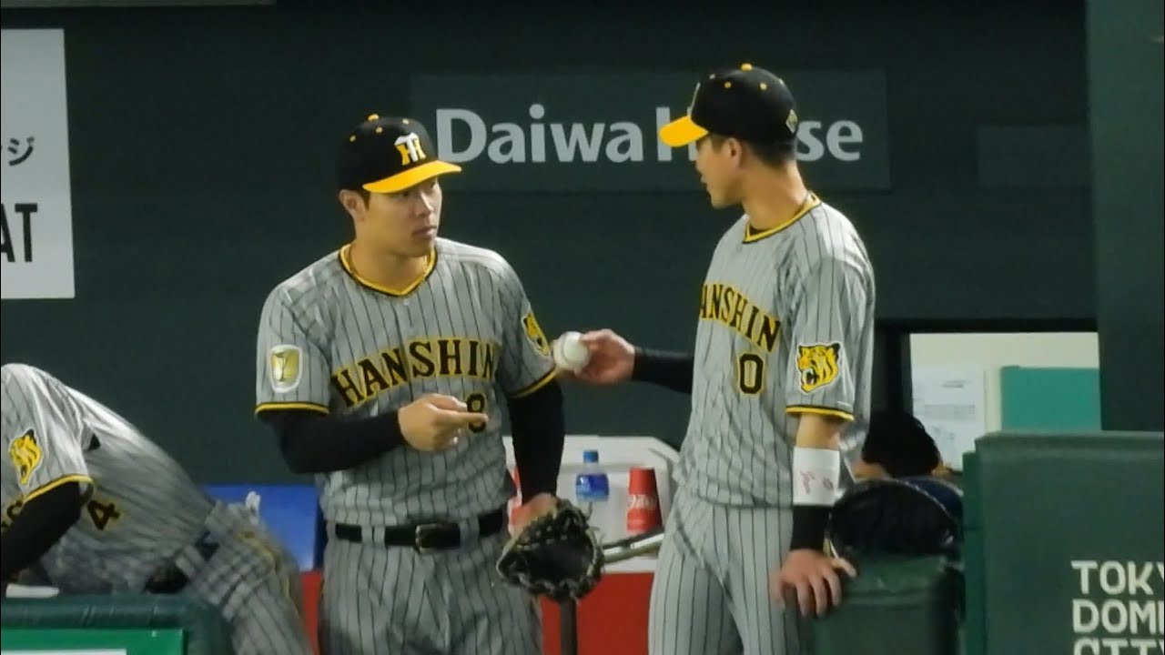 【ちょっと質問?!】キャッチボール用のボール渡しの順番を木浪に確認する佐藤輝明 2024.5.4