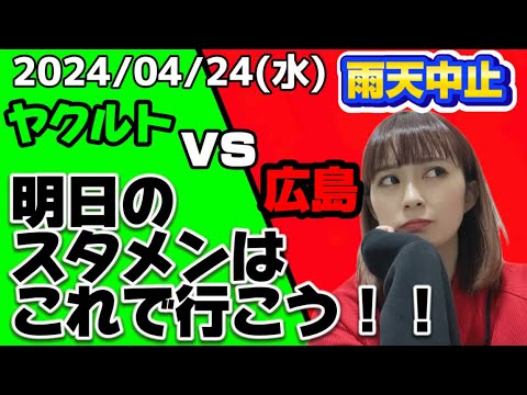【4/24 ヤクルト vs 広島】雨天中止!!!明日のスタメン予想していく!!高橋奎二vsハッチ